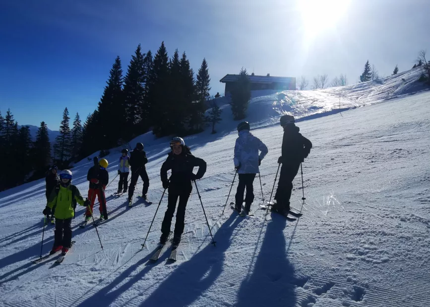 Die Teilnehmenden wurden in unterschiedliche Niveaustufen eingeteilt und waren mit großem Eifer und jeder Menge Spaß bei der Sache. Für 4 Tage ging es morgens mit dem Skibus ins nahgelegene Skigebiet Brauneck/Wegscheid. Von dort aus verteilten sich die einzelnen Skigruppen im Skigebiet. Den ersten „Einkehrschwung“ gab es beim gemeinsamen Mittagessen auf einer der zahlreichen Skihütten. Am späten Nachmittag hatten die Skifahrer dann Zeit in der Unterkunft zu „chillen“, bis das Abendessen mit anschließendem Gesellschaftsabend anstand. Sowohl die Lehrkräfte als auch die Schüler*innen bezeichneten die Skifreizeit als „sensationell krass“ und sind bereits voller Vorfreude auf das nächste Jahr.