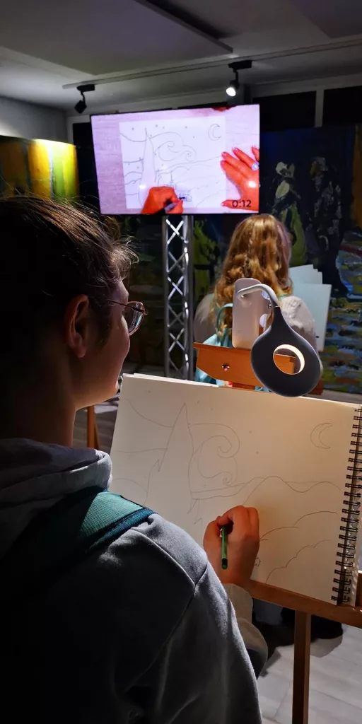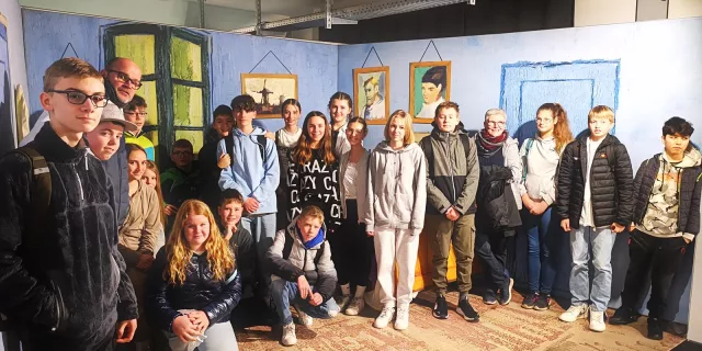 Er gilt nicht nur als Virtuose am Pinsel, sondern konnte auch mit Worten umgehen. Im Rahmen des Kunstunterrichts hatten die Schüler*innen des Jahrgangs 7 die Möglichkeit in die Welt des bekannten Zeichners einzutauchen, indem Sie die multisensorische Kunstausstellung Van Gogh Alive, in Frankfurt, besuchten. Mit Hilfe verschiedener Projektionen seiner Kunstwerke, interaktiven Inszenierungen, Farben, Klängen sowie einem Zeichenraum erlebten die Schüler*innen ein Ausstellungsformat der besonderen Art. Organisiert wurde der Ausflug von den Kunstlehrern Astrid Just, Hannah Hagner und Uli Arnold, die die Ausstellung in den nächsten Kunststunden nochmals reflektieren und an den Unterricht anbinden wird.