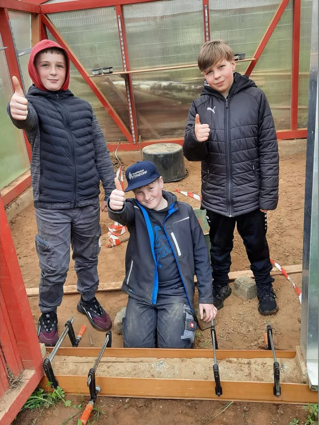 Nachdem im letzten Jahr große Veränderungen im Schulgarten angestoßen wurden, sind nun erste Ergebnisse zu bewundern. Neben der ersten Anzucht von Jungpflanzen im Gewächshaus werden auch kleinere Bauarbeiten von den Kindern in der HundundGarten-AG durchgeführt. Selbstverständlich gehört auch die Pflege der Beete und das Jäten von Unkraut zu den Gartenarbeiten dazu.