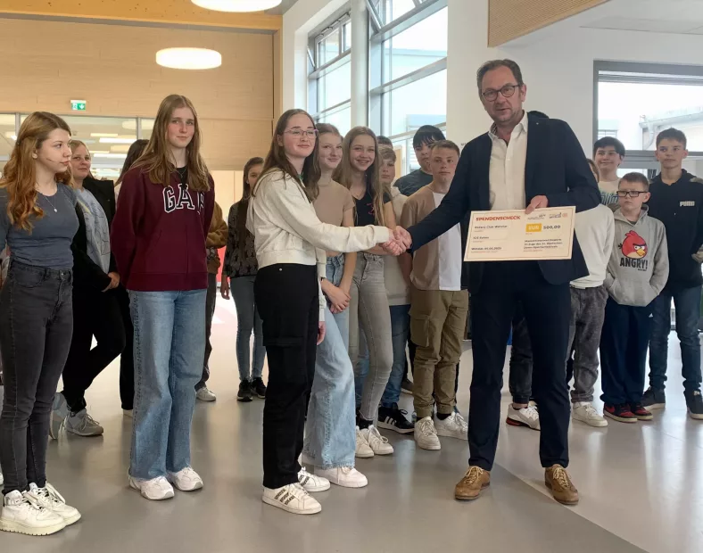 Im Rahmen des Kunstunterrichts betreut durch Kunstlehrer Ullrich Arnold, nahm die Klasse 7/6 an diesem Kreativwettbewerb teil und konnte aus ihren Reihen Franka Schenk als Siegerin hervorbringen. Als besonderes Dankeschön gab es vom Rotary Club Wetzlar und unter Beisein vom kommissarischen Schulleiter, Stefan Klotz, ein Siegerpreisgeld in Höhe von 500 Euro, das in die Klassenkasse der 7/6 geht.