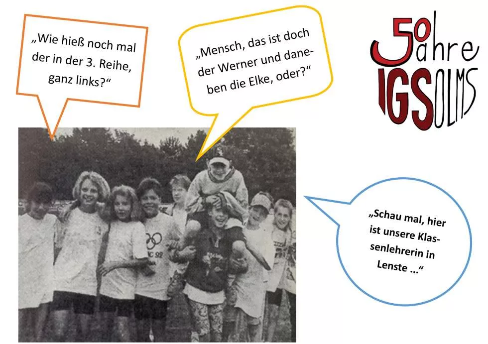 Neben dem Wiedersehen von Mitschüler:innen und Lehrer:innen soll dieser Abend die Gelegenheit bieten, Bilder und vielleicht sogar, falls vorhanden, Filme aus den 50 Jahren IGS anzuschauen.