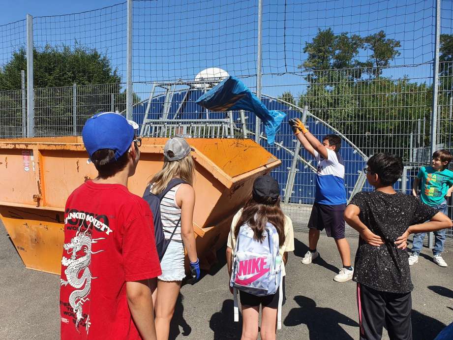 Den Temperaturen zum Trotz, befreiten die Klassen an unterschiedlichen Orten Wege, Plätze und Feld- und Waldränder von Müll. So wurden beispielsweise der Galgenwald, das Tretbecken und der Hüttenplatz angesteuert. Die Mengen an Müll und die neben den zu erwartenden Dingen wie Flaschen, Papiertüchern, Verpackungen teilweise kuriosen Funde regten viele Gespräche an. So wunderten sich die Schülerinnen und Schüler über die Achtlosigkeit der „Wegwerfgesellschaft“, da Unmengen an Pfandflaschen gefunden wurden. Sie ärgerten sich über den Schaden, der für Pflanzen und Tiere entsteht und lernten die Idylle und den Erholungswert von Orten, wie dem Tretbecken kennen, vorausgesetzt man geht gut damit um.