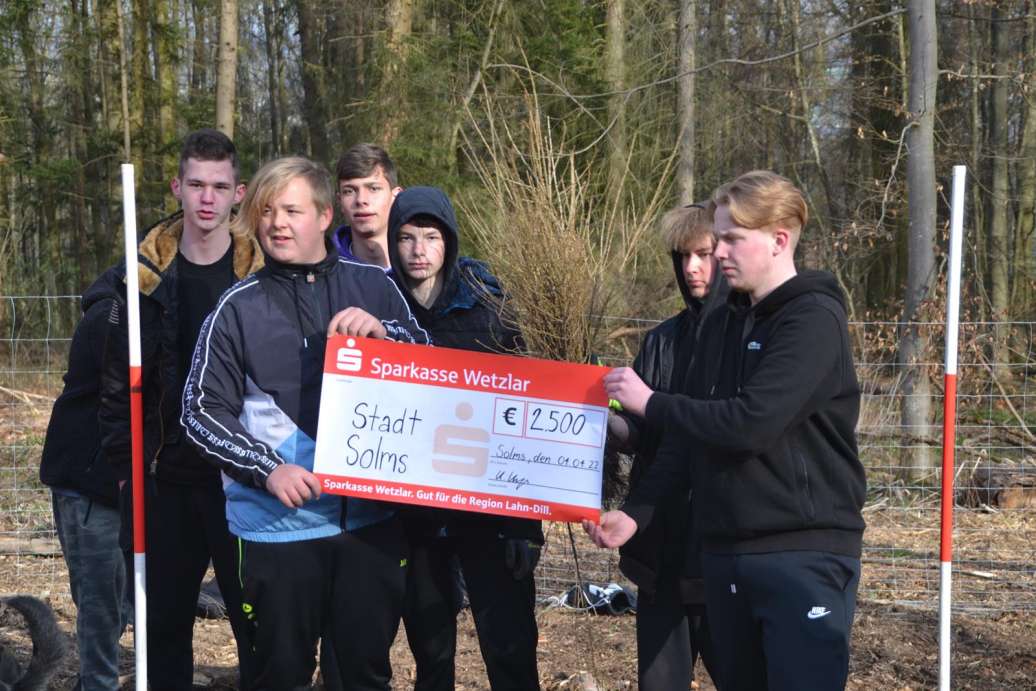 Am ersten der drei Tage erfolgte die offizielle Spendenübergabe auf der auserwählten Waldfläche, gemeinsam mit unserer Schulleiterin Frau Wegerle sowie dem Bürgermeister Herrn Inderthal, dem Stadtrat Herrn Leidecker und dem Stadtverordnetenvorsteher Herrn Hagner der Stadt Solms.