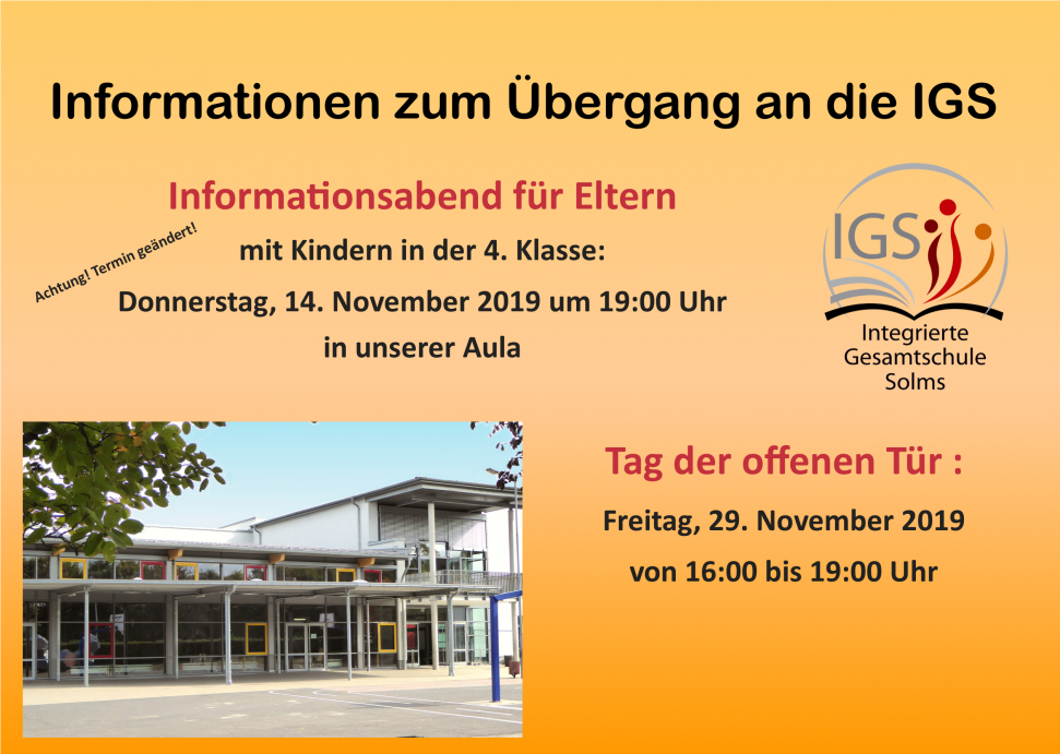 19:00: Informationsabend zum Übergang an die IGS Solms