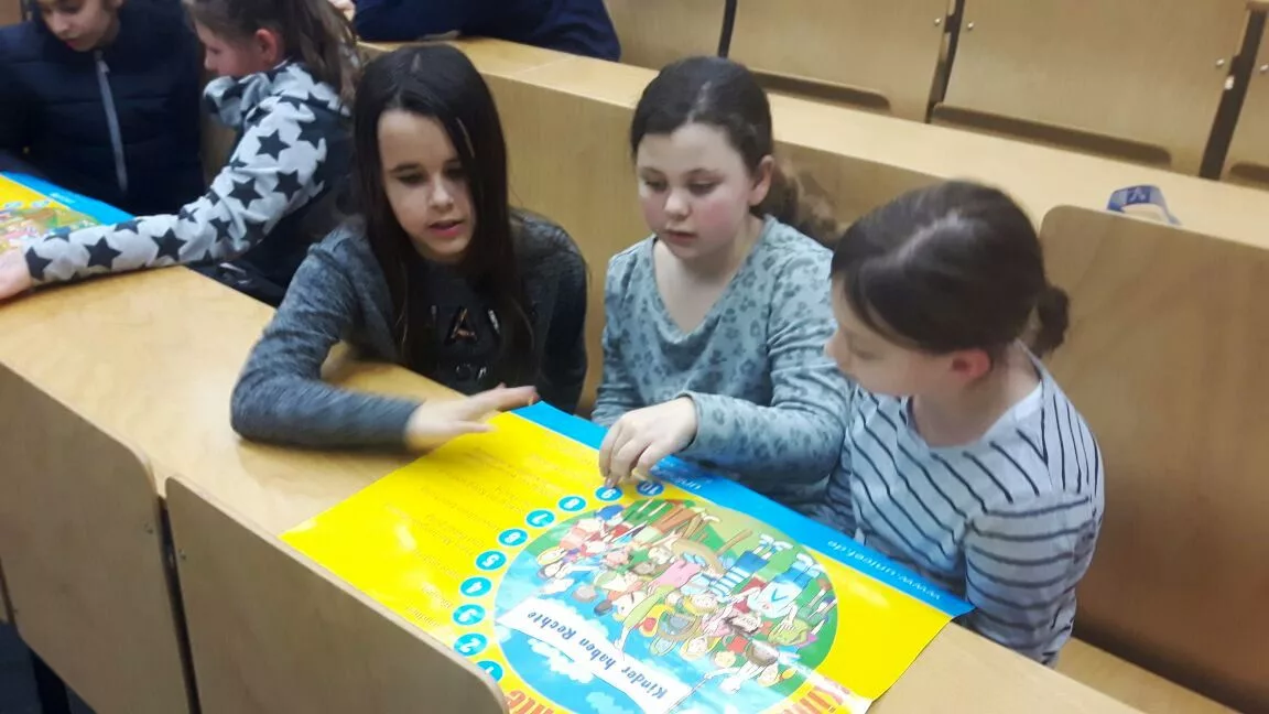 Am Ende konnten die Schülerinnen und Schüler noch Fragen an Frau Zielinski stellen. So auch, warum sie sich für UNICEF engagiere und in welchen Ländern sie schon gewesen sei. Abschließend wurden noch kleine Bücher von UNICEF verteilt, die alle Kinderrechte beinhalten. Mit diesen gilt es nun im Unterricht weiterzuarbeiten, um einen vertiefenden Einblick auf noch ungeklärte Fragen zu bekommen.