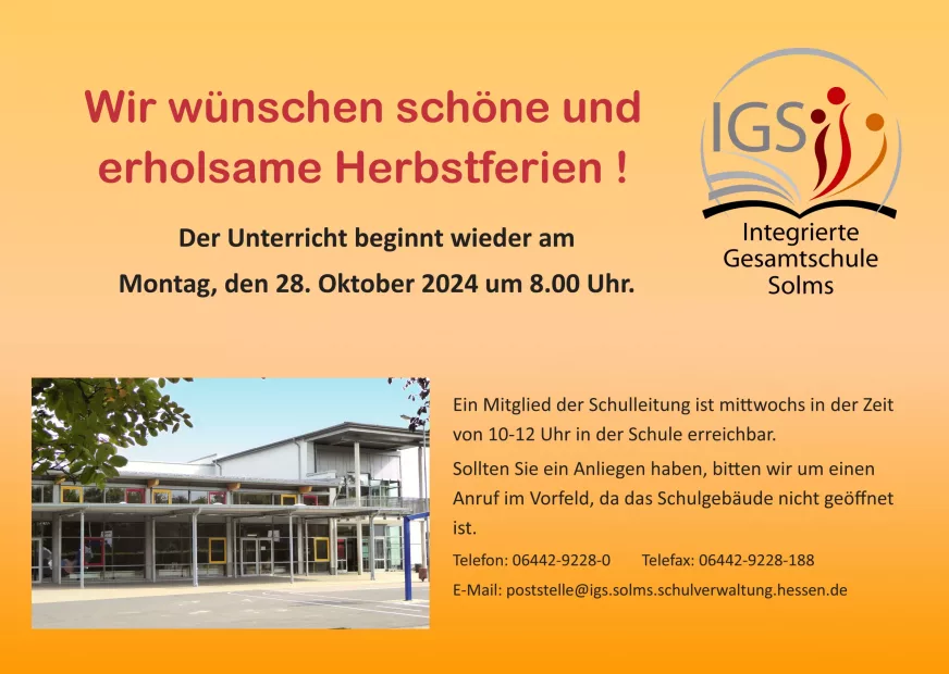 19:00: Informationsabend zum Übergang an die IGS Solms