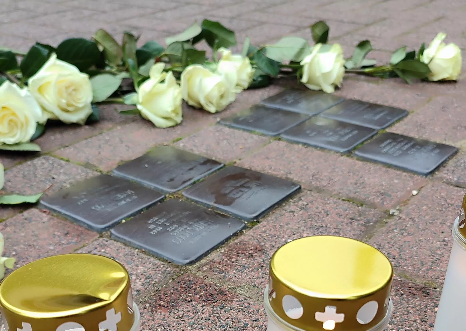 Die Schülerinnen der Geschichts-AG von Roger Haberditzl und David Schüßler (Mariella Göbel, Anna-Sophie Grünhagen, Sonja Lehle, Paulina Faust, Leoni Weiß, Lilly Morlang, Anna Keller, Hannah Schäfer und Madleine Knoll) vermittelten mittels einer szenischen Lesung aus Tagebüchern von jüdischen Kindern und Jugendlichen einen Eindruck aus dem Leben während des Holocaust. Während der Lesung wurden die neuen Stolpersteine von weiteren Zehntklässlern geputzt und für jeden Bewohner eine weiße Rose abgelegt und eine Kerze entzündet.
