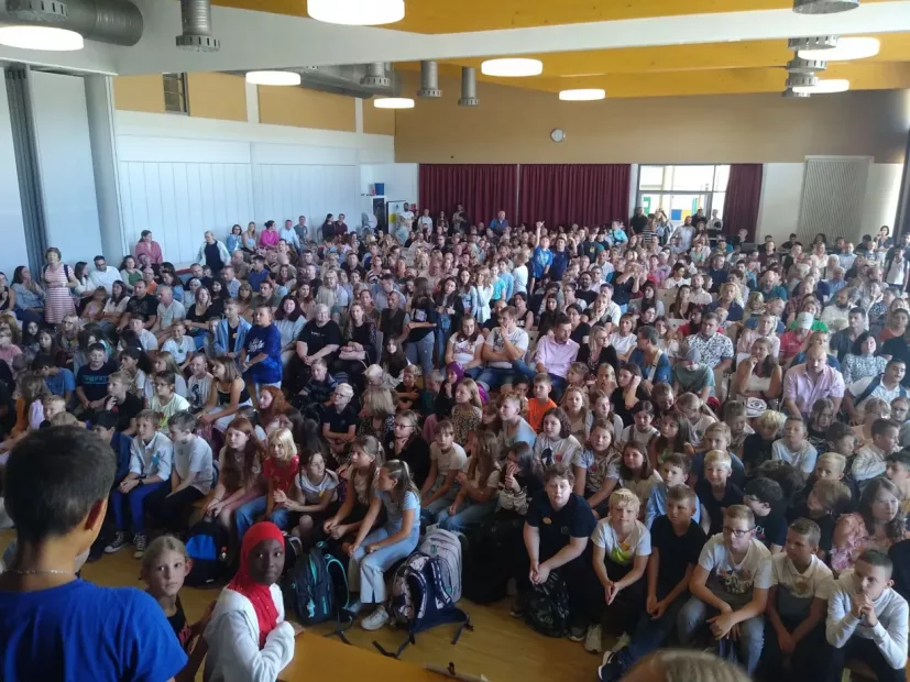 Der evangelische Pfarrer Michael Perko sprach die Jugendlichen direkt an und betonte die Mahnung der deutschen Geschichte. Jeder sei gefordert, Hassbotschaften im Internet nicht zu teilen und sich für Frieden einzusetzen.