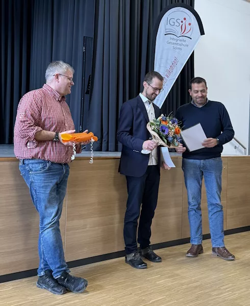 Am 21.03.2024 gab der Leitende Schulamtsdirektor Jochen Reinhardt vom Staatlichen Schulamt in Weilburg im Rahmen einer Dienstversammlung die Auswahl von Herrn Stefan Klotz zum neuen Schulleiter bekannt. Auf freundliche und charmante Weise drückte er dabei auch seinen Dank für die Leistungen aller Schulleitungsmitglieder in der Zeit der Vakanz aus. Herr Klotz, den man sicher als Urgestein der Gesamtschule Solms bezeichnen kann, folgt damit Frau Anke Wegerle, die zum Februar 2023 in den Ruhestand gegangen war.