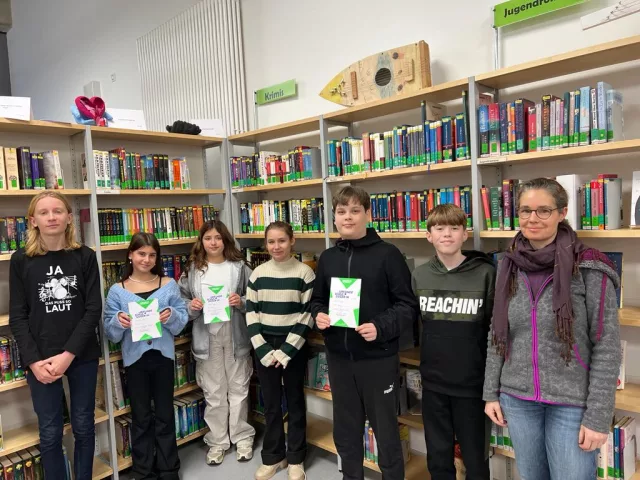 Dazu trafen sich die im Vorfeld ermittelten fünf Klassensieger der sechsten Klassen und stellten sich dem Urteil der fachkundigen Jury. Diese setzte sich zusammen aus der ehemaligen Schulleiterin Anke Wegerle, der Leiterin des Lernzentrums Stefanie Krause und dem Vorjahressieger Eric Nesseldreher.
