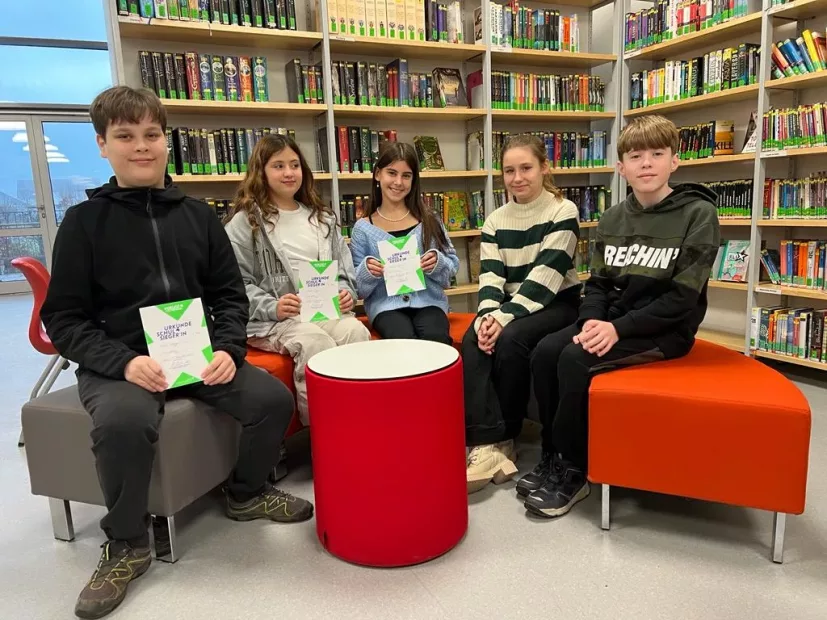 Die Klassensiegerin der 6/2, Sara Yildiz, eröffnete den Lesewettstreit, gefolgt von Emily Wobser aus der 6/5, Artur Hasenkampf (6/1), Emil Lamp (6/3) und Leontina Hein (6/4).