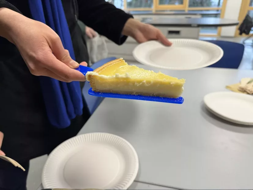 Am Ende der Herstellung präsentierten die Schüler stolz ihre individuell gestalteten Tortenheber. Die Ergebnisse waren beeindruckend vielfältig – von schlichten, eleganten Designs bis hin zu verspielten und bunten Kreationen war alles vertreten. Die Schüler hatten nicht nur handfeste Produkte geschaffen, sondern auch ein tieferes Verständnis für handwerkliche Prozesse und Teamarbeit entwickelt. Doch damit nicht genug: Im Anschluss an die Präsentation wurden die Tortenheber in der Praxis getestet – an frisch gebackenem Kuchen! Die Schüler hatten die Möglichkeit, ihre Kreationen zu erproben und ihre Funktionalität zu überprüfen.